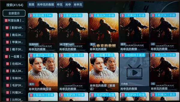 这是影视仓的搜索结果界面,以及一些直播画面。