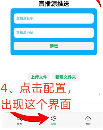 二、接着点击手机屏幕下方的配置字样,会出现配置仓库、线路和直播源的界面。