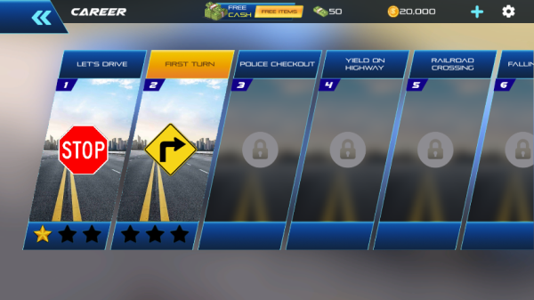 选择驾驶关卡,每一个关卡都能够让你学习到有关驾驶和道路安全所需的知识。