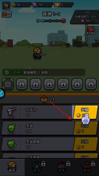 点击下方升级可增强角色实力