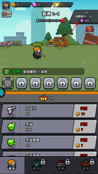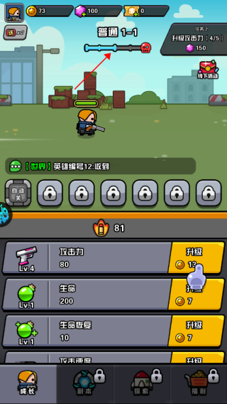 新手冒险家们最重要的就是用战斗所获得金币,来提升界面下方的战斗属性,完成指定主线任务将会解锁装备,技能以及伙伴,帮助冒险家们更好的应战。