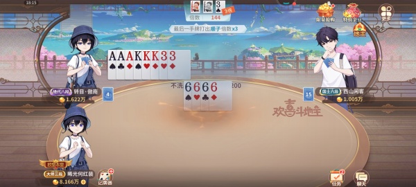 这里简单讲解一下斗地主的对局思路问题,这里的牌型非常好,地主不管出什么牌,我们都选择4炸压牌;
