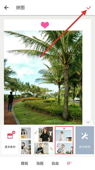 设置模板和排列方式之后,点击右上角的“√”这个符号,表示拼图完成