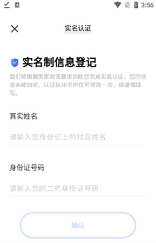 然后需要输入自己真实名字和身份证号码,点击确定。