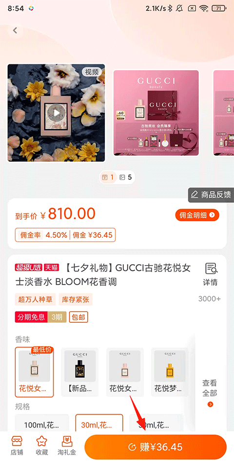 找到后点击进入查看该商品的详细信息,如款式、规格、适宜人群等,确认无误后点击下方【赚¥xx】;