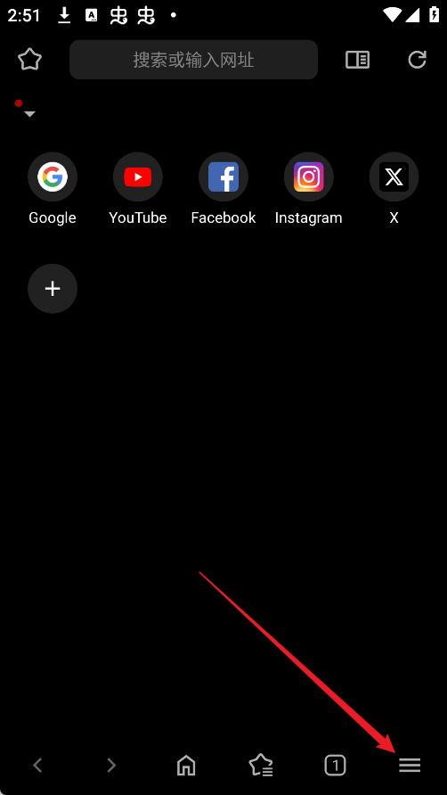 1、打开Soul浏览器后,点击界面右下角的“三条横线”图标,进入功能菜单;