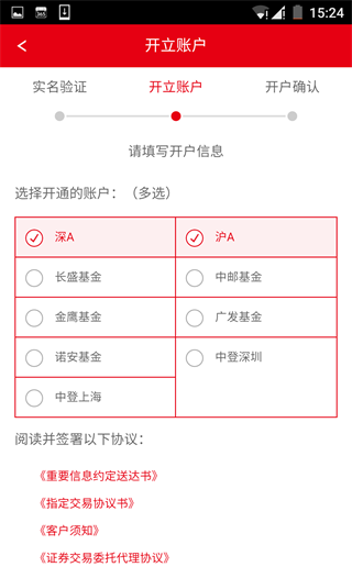 选择开通账户类型,签署协议并设置交易密码