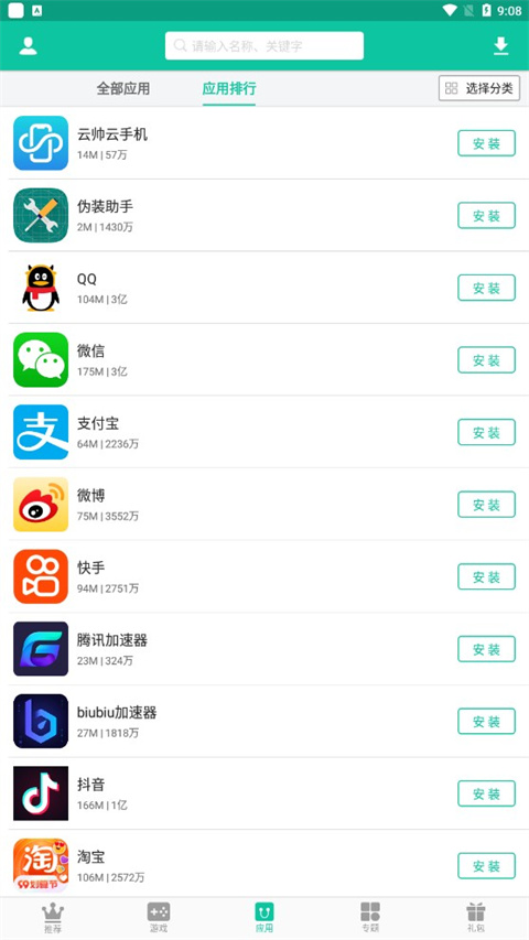 应用页:可以看到很多有用的工具,比如云帅云手机、伪装助手等。