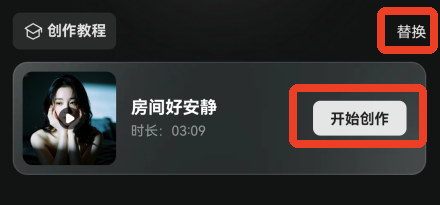 选择好之后点击【开始创作】就可以了。如果选错了也没关系,可以点击右上角的替换。