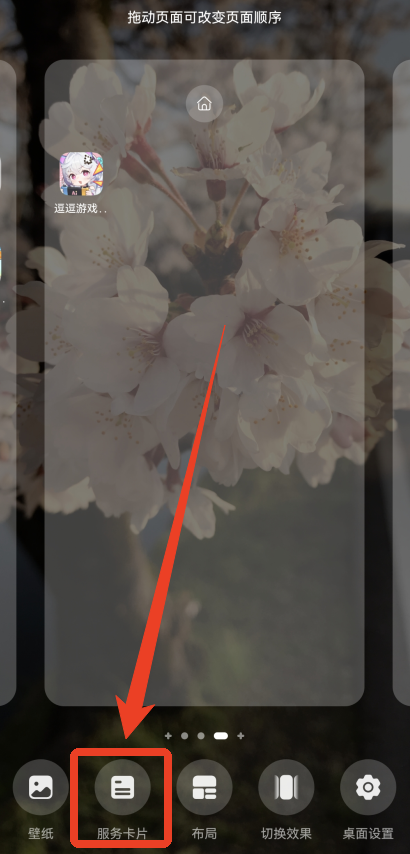 如果没有弹出,可根据以下步骤操作,不同品牌的手机添加小组件的方式不同,这里拿华为举例。后台退出软件,返回到桌面,双指缩放捏合,点击下方的【服务卡片】。