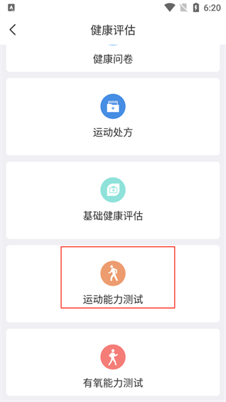 这边以健康评估为例点击,选择运动能力测试