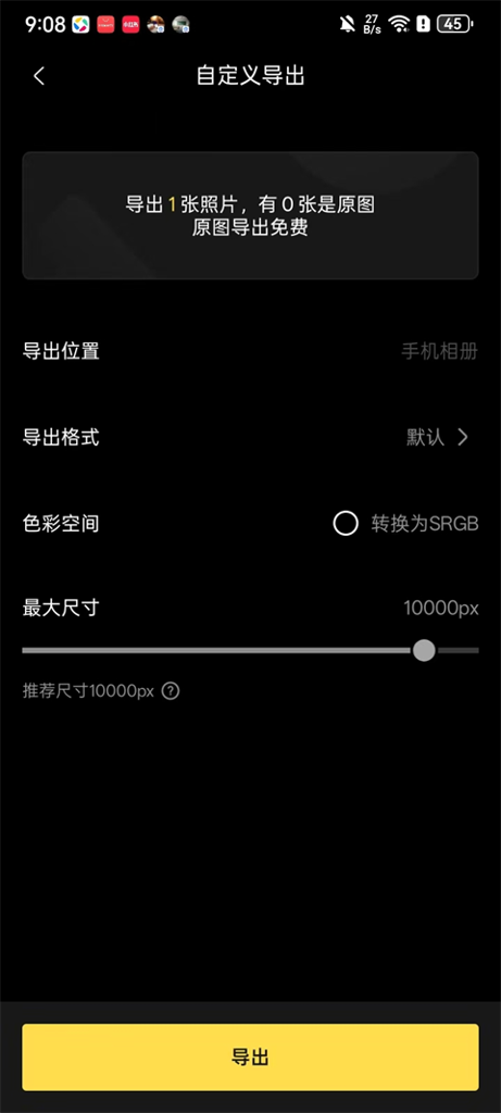 【自定义导出】:可修改导出位置、格式、色彩空间以及最大尺寸;