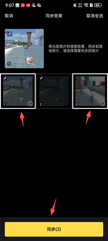 勾选需要同步的图片,点击【同步】即可;