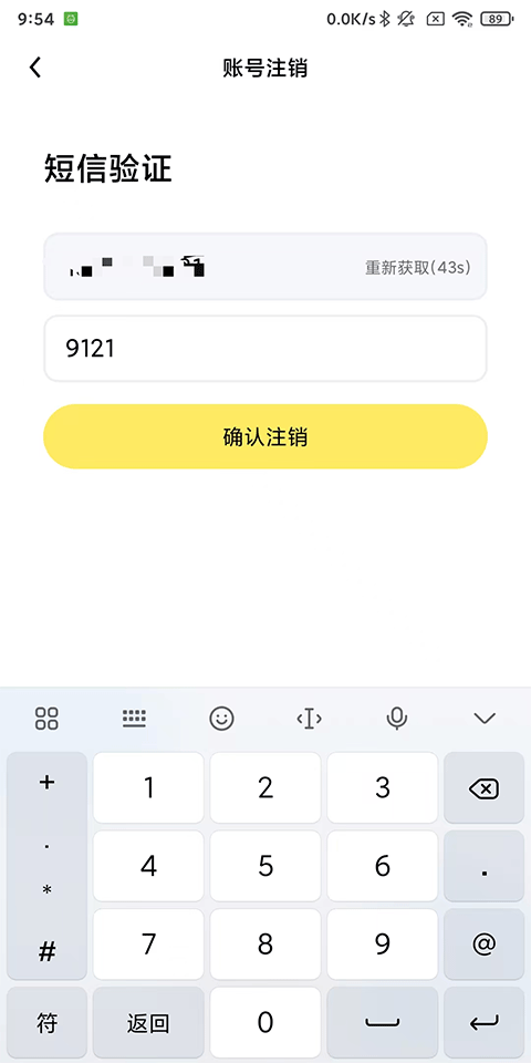 输入手机号以及验证码,确认注销;