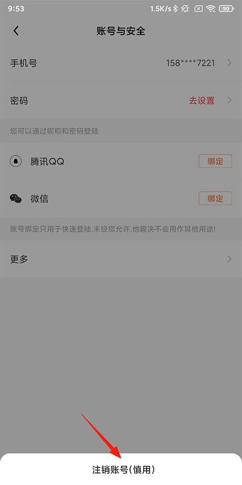 点击下方注销账号;