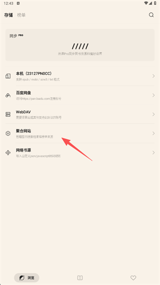 进入软件的浏览页面后,可以选择本机或者网盘导入等书籍导入方式。