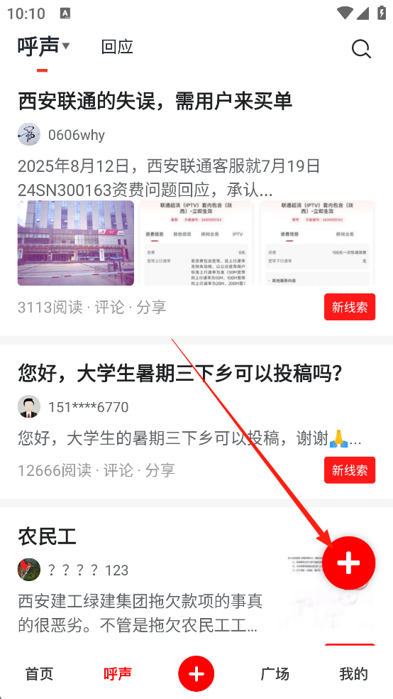 打开软件,登录之后,点击【呼声】