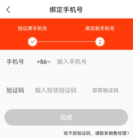 之后输入新的手机号码在此获取验证码,点击完成就可以了。