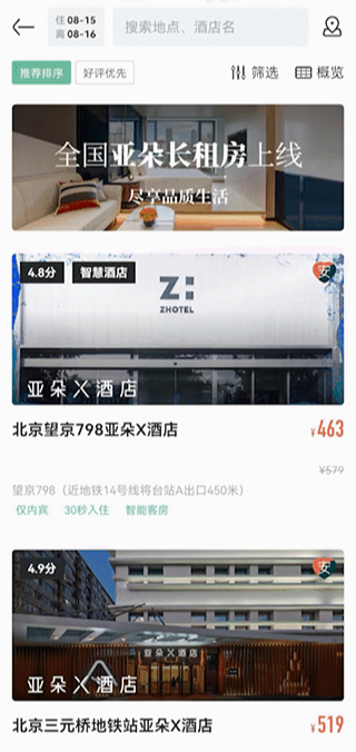 亚朵酒店app一款线上优质酒店预订软件,用户可一键搜索并预订旗下多品牌门店,覆盖全国一线、省会及热门旅游城市的核心街区。支持实时房态查询、在线选房、灵活取消政策,让出行安排更省心。除亚朵自有品牌外,App也支持预订其他合作酒店,拓宽选择范围,满足多样化需求。