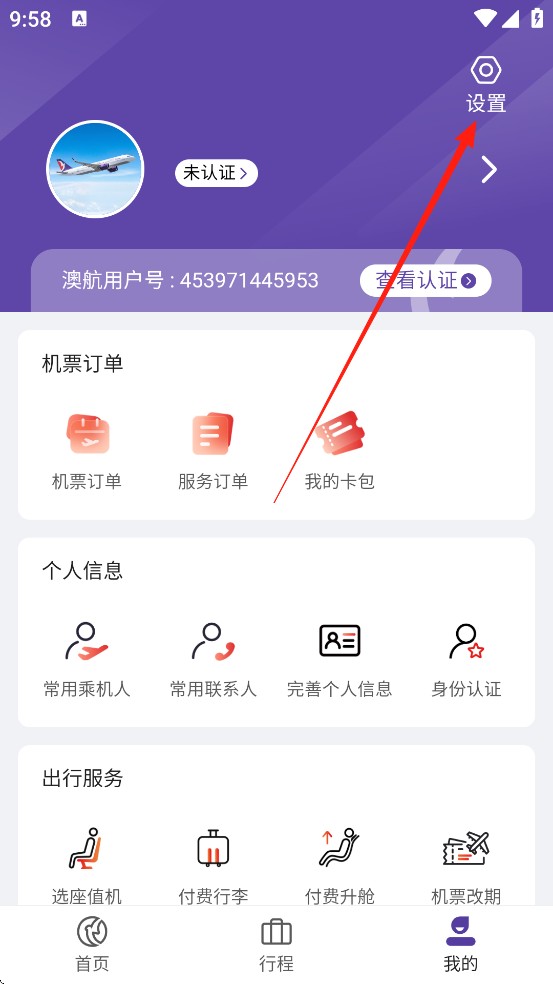 打开澳门航空App,点击【我的】