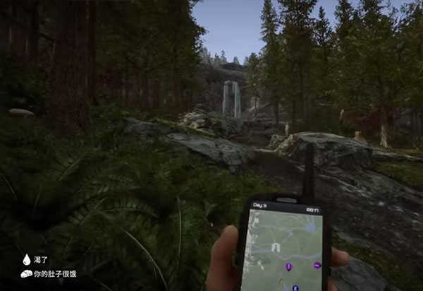 来到女野人可能刷新的第1个位置:如图所示的瀑布旁边,如果她不在,我们继续去下一个位置。