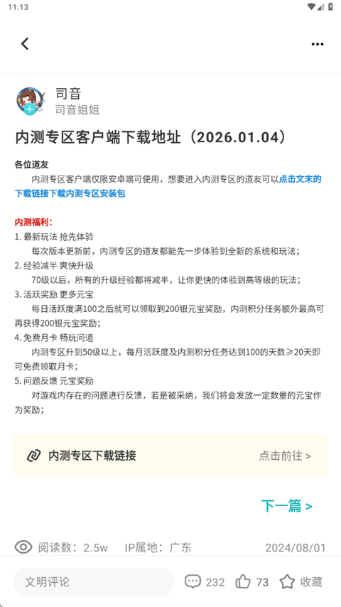 在文章中有介绍内测的福利以及下载地址;