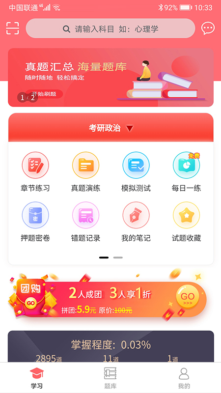 2、涵盖金融、医学、财会、工程、教师、公考、艺考、英语四六级、计算机等级考试、考研考博等600多个考试项目,题量达1000万道;