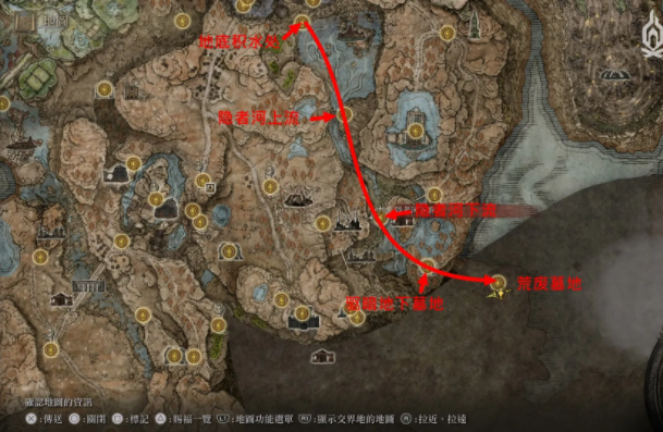 然后从此出发,一路沿着水流向下,经过赐福「隐者河上流」「隐者河下流」进入「驱暗地下墓地」。