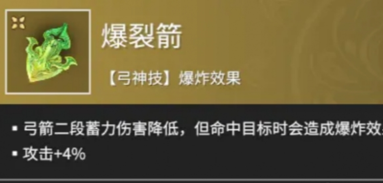 1、爆裂箭是弓箭的神技,箭矢命中敌人后会造成高额的爆炸伤害。