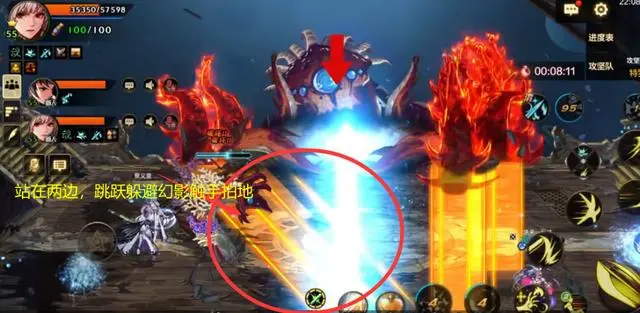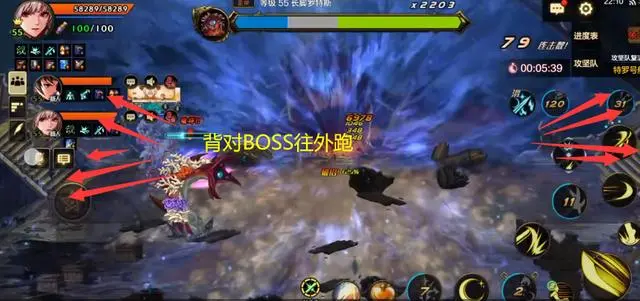全屏吸水:困难罗特斯全屏吸水时,所有人在BOSS两边的地图边缘,背对BOSS一直往外跑就行。
