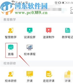 1.首先第一种直播方式可以在个人中心界面的教育教学这个模块中找到直播这个功能的图标,点击即可开始直播。