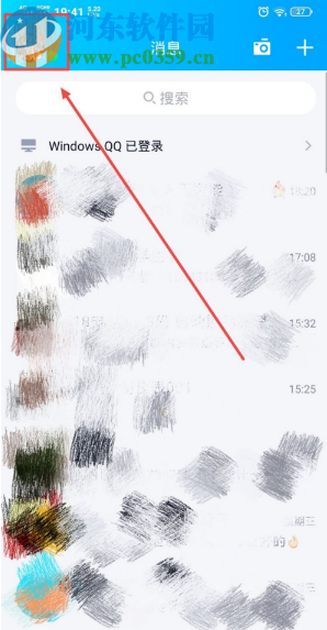1.首先第一步进入到手机QQ界面之后在消息列表界面的左上角点击自己的头像,如下图中所示。