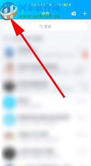 1.首先第一步我们打开手机QQ之后在消息界面的左上角点击自己的账号头像,如下图中所示。