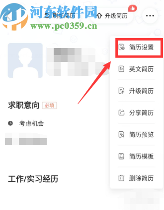 2.点击进入到我的在线建立模块之后,点击界面右上角的三个圆点按钮,然后点击这个按钮,在出现的选项中选择简历设置。
