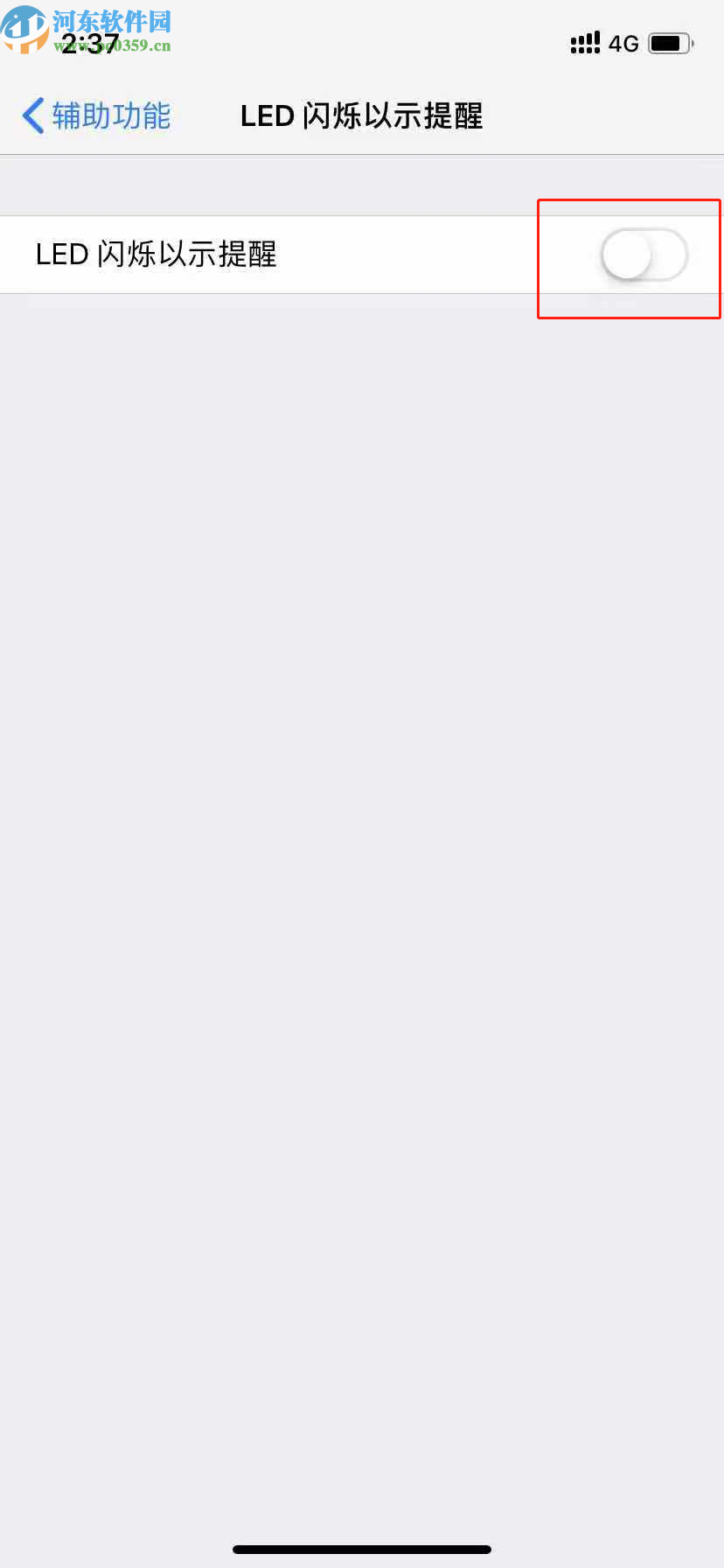 4.最后在LED闪烁以示提醒这个功能界面我们就可以看到功能的开关了,然后点击后面的开关将功能关闭即可。