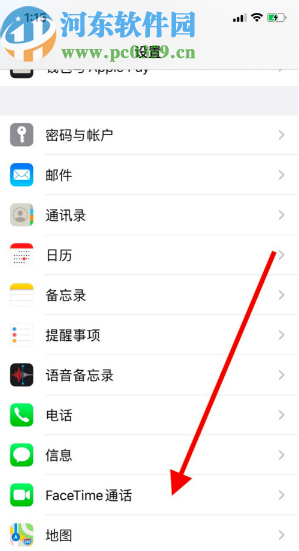 2.进入到手机的设置界面之后,我们在设置界面中滑动选项,找到Face Time通话这个选项,然后点击进入到其中。