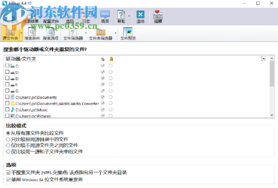2.需要扫描重复文件的源文件夹选择完成之后,我们可以点击搜索条件功能来选择扫描搜索的条件,这个根据用户的个人需求来勾选即可。