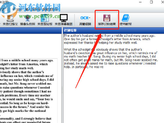 4.选择之后软件就会开始识别,在界面的右边就会出现识别出来的英文内容,然后我们点击上方的保存识别结果这个选项可以将识别结果保存下来。