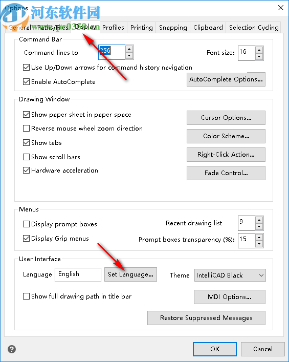 3、点击 Display功能,在软件下方找到 Set Lanquage...