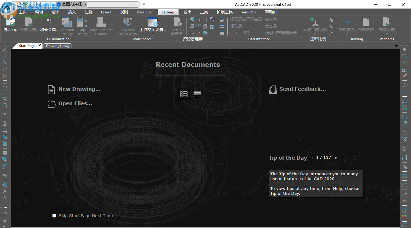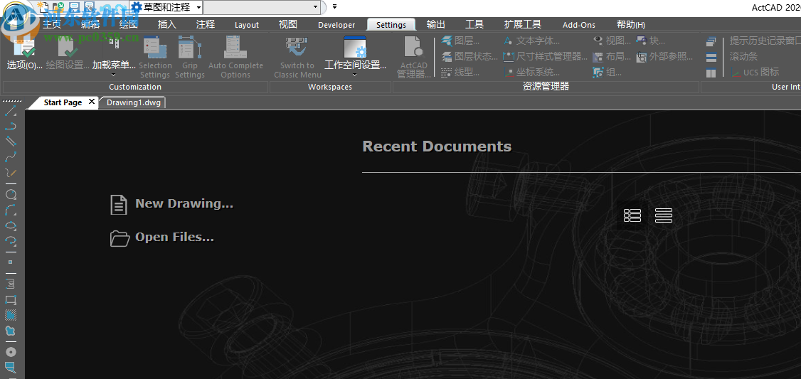 2020是一款功能强大的CAD软件,主要的功能就是设计图纸以及建模,这款软件的功能与autocad大致相同,如果用户会使用CAD软件绘图就可以下载这款软件使用,该软件在最新版2020上已经提供了中文界面,但是安装以后是默认英文界面,部分用户不知道在哪里设置中文,所以小编在这里提供一个简单的教程,方便新用户将官方默认的English界面转换为Chinese界面,下方就是具体的教程,另外你也可以在河东下载ActCAD