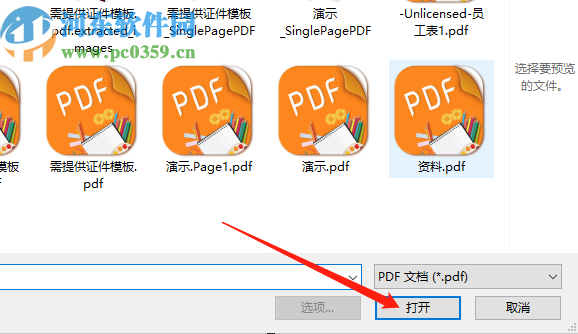 2.点击打开选择文件的界面之后,我们在界面中找到要添加水印的PDF文件之后点击打开按钮。
