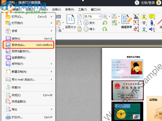 6.水印设置完成之后,下一步我们就需要点击界面左上角测文件这个选项,然后在出现的选项中点击另存为来将设置好水印的文件另存为保存下来了。