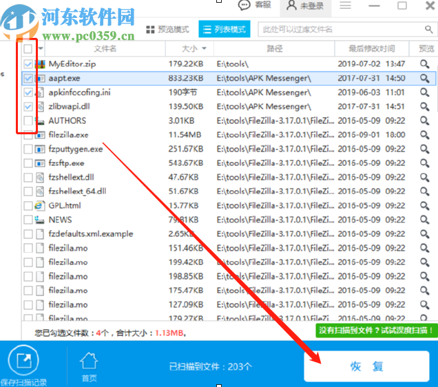5.最后我们只需要在界面中找到并勾选要恢复的文件之后,点击右下角的恢复这个功能按钮就可以恢复了。