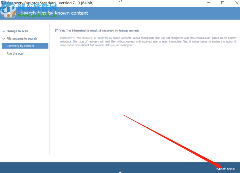 3.点击下一步之后会来到下图所示的界面,在界面中是一个关于扫描内容的介绍,我们看完以后勾选界面中的选项之后点击右下角的Start scan按钮就可以开始扫描了。