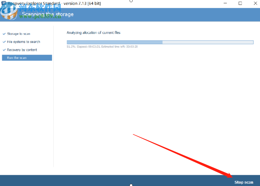 4.开始扫描之后我们在界面中可以看到扫描进度,如果用户想要终止扫描的话可以点击右下角的Stop scan按钮。