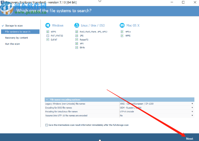 2.点击之后下一步是选择我们要扫描的文件类型,也就是我们想要针对性的扫描哪种类型的文件,选择完成之后点击右下角的Next。