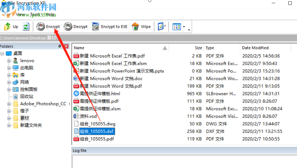 1.首先第一步打开电脑之后在左边列表中打开要加密的文件并选中,选中之后点击界面上方的Encrypt这个功能按钮。
