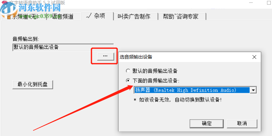 4.点击杂项之后在出现的界面中我们可以对音频的输出设备进行选择,点击界面中的三点按钮即可打开选择的界面,如下图中所示。