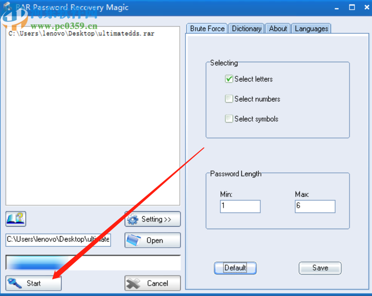 5.暴力破解的一些密码参数都设置完成之后,下一步我们就可以点击界面左下角的Start按钮即可开始恢复rar文件的密码。