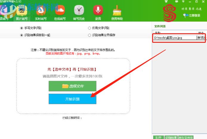 3.点击打开按钮之后我们选择的图片文件就成功添加到软件界面中了,在右上方可以看到文件列表,紧接着我们点击开始识别按钮。